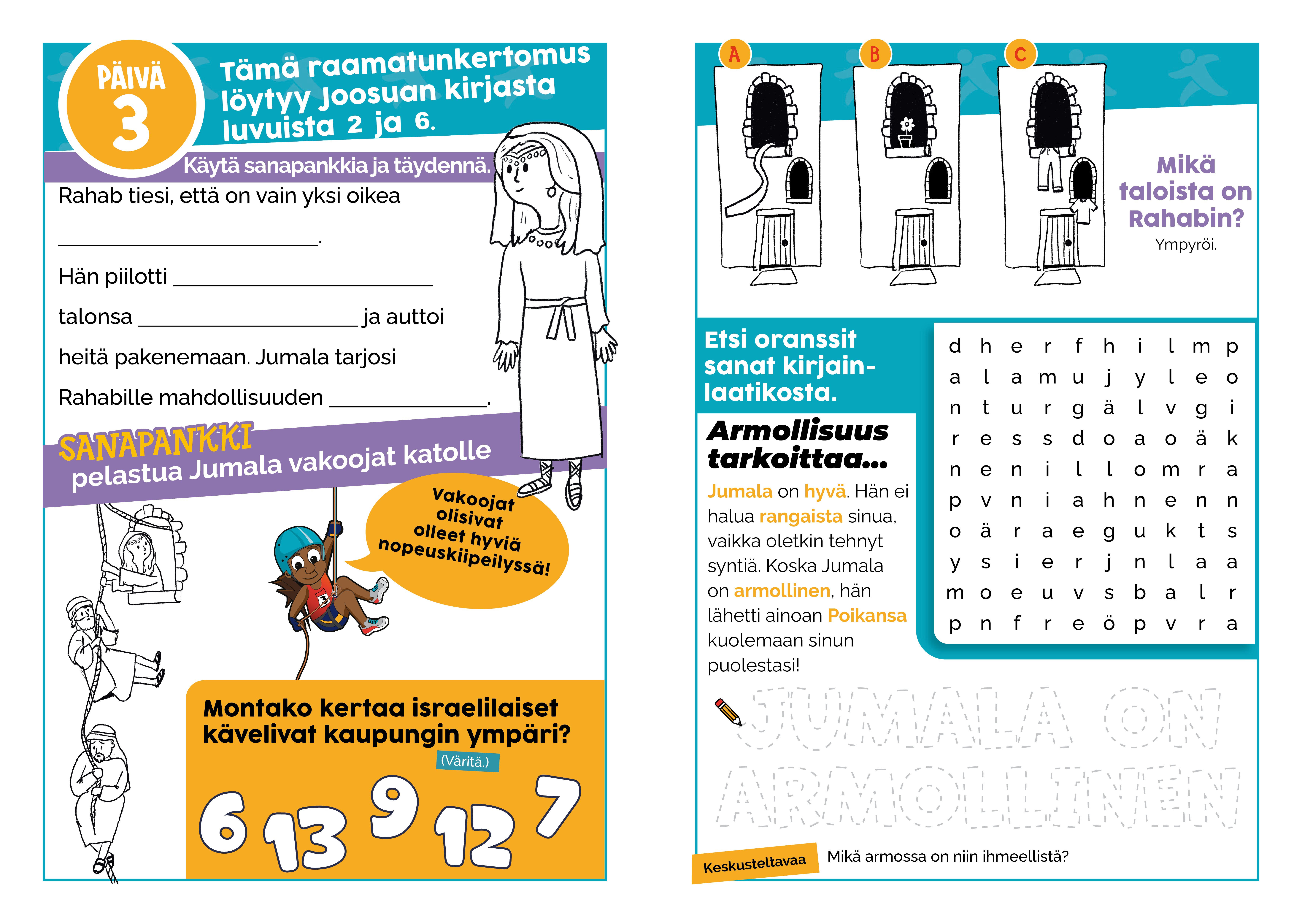 Tämä 16-sivuinen vihkonen on tehty Voittopalkinto-leiriä varten noin 7–12-vuotiaiden lasten ja varhaisnuorten käyttöön. Jokainen leiriläinen tarvitsee oman vihkosen. Värikkäässä A5-kokoisessa vIhkosessa on hiljaisten hetkien ohjeet kivoine tehtävineen, jotka tukevat leirin Yksi tie -opetuksia. Painettu Suomessa.
